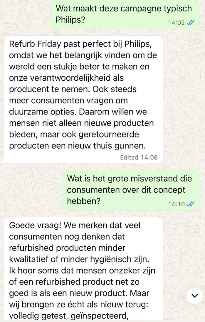 Dit is inmiddels de tweede editie en Refurb Friday sluit aan bij de bredere duurzaamheidsambitie van Philips. We zetten refurbished producten nu extra in de spotlight, maar bieden ze het hele jaar door aan. Refurbishment wordt steeds groter en we werken eraan om meer producten “refurb-proof” te maken. Tegelijk willen we consumenten helpen bewuster te kopen, zodat ze erop kunnen vertrouwen dat refurbished producten van goede kwaliteit zijn maar ook dat ze minder producten onnodig retour sturen.