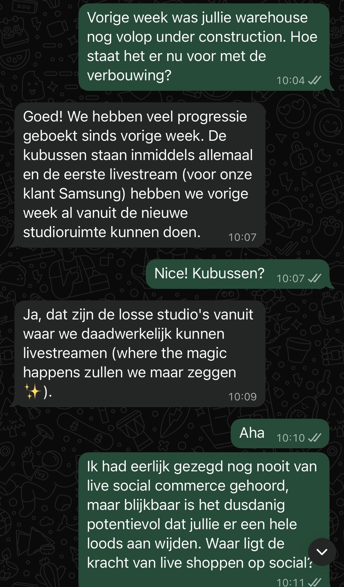 Ik had eerlijk gezegd nog nooit van live social commerce gehoord, maar blijkbaar is het dusdanig potentievol dat jullie er een hele loods aan wijden. Waar ligt de kracht van live shoppen op social?