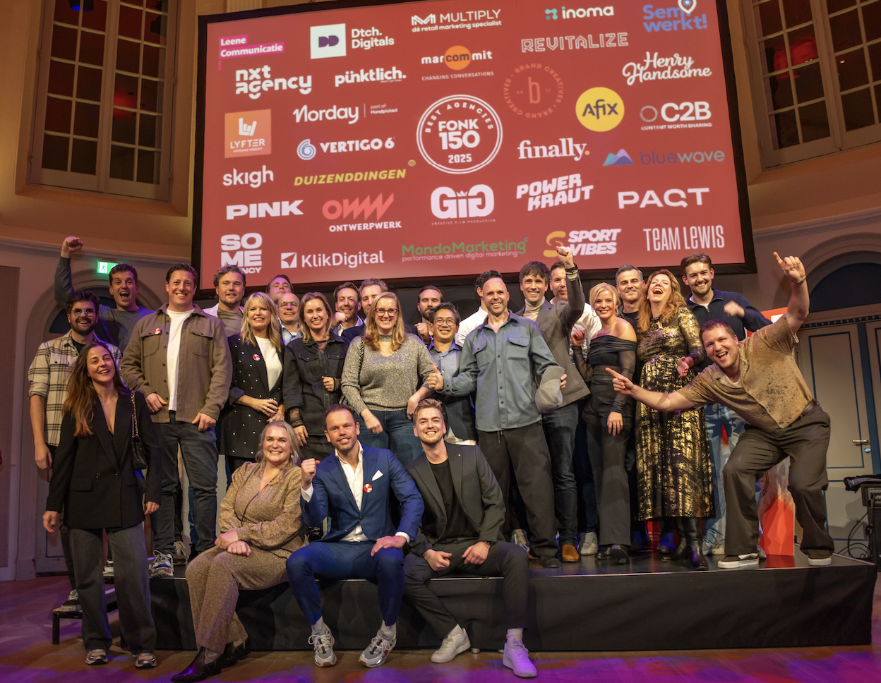 Op woensdagavond 26 november namen in een afgeladen Felix Meritis de FONK150 Bureaus 2025 hun zwaar bevochten en zeer verdiende FONK150 Best Agency Awards in ontvangst (foto onder).