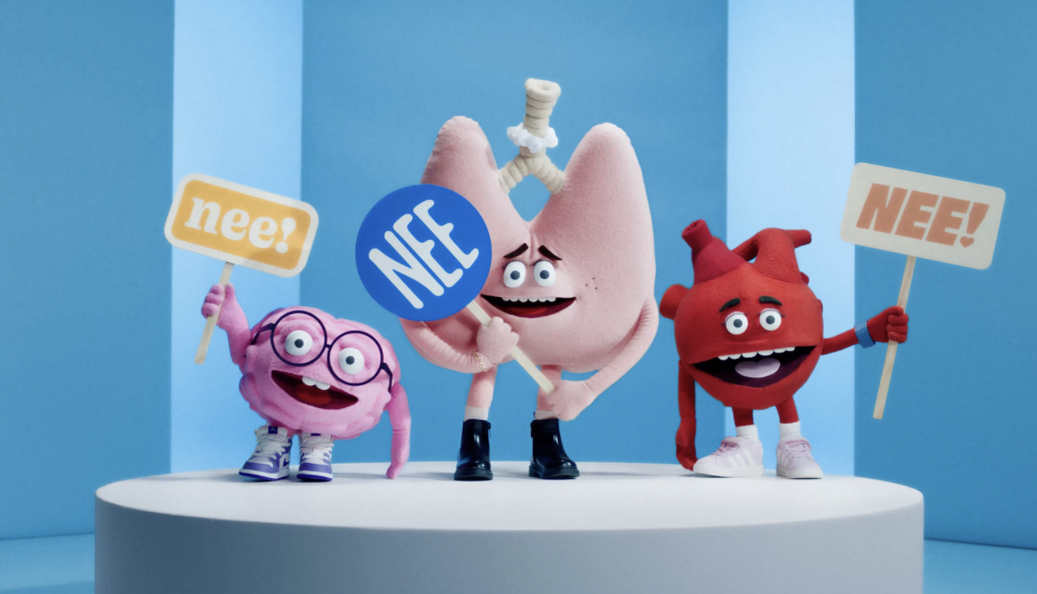 Lukas van de Ven, Executive Creative Director bij The Family: “We wilden een campagne maken die niet wijst met het vingertje, maar inspeelt op de wereld van jongeren. Door organen een eigen persoonlijkheid te geven, kun je de fysieke impact van vapen laten zien op een manier die niet afschrikt, maar juist raakt. Humor, herkenning en muziek zijn krachtige ingangen om jongeren te activeren. ‘Ik zeg nee’ is geen preek, maar een anthem dat jongeren het gevoel geeft dat ze sterker staan dan de verleiding.”