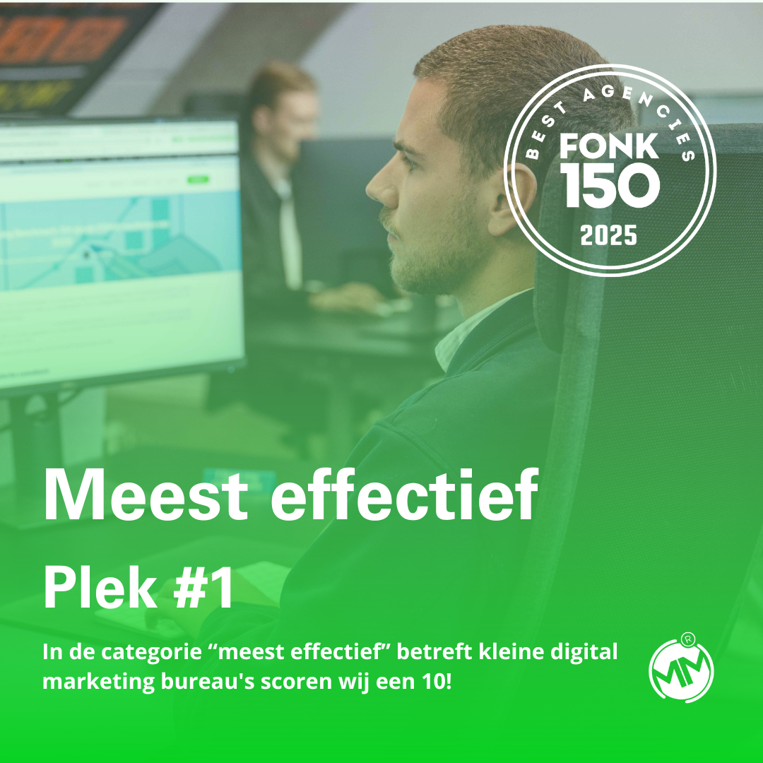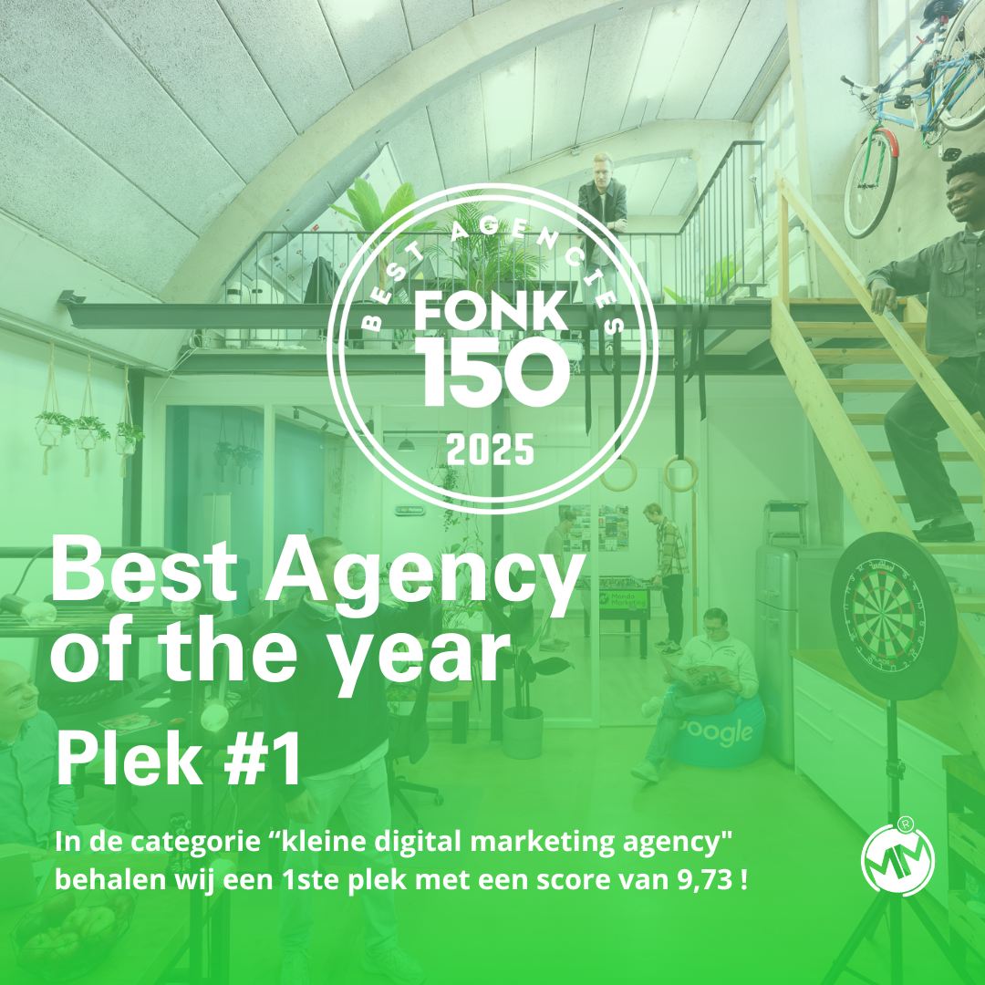 De FONK150 wordt gezien als een van de belangrijkste ranglijsten binnen de Nederlandse marketingbranche. De lijst is volledig gebaseerd op klantwaarderingen en vormt daarmee een directe weerspiegeling van het vertrouwen dat onze klanten in ons stellen. Dat we dit jaar als beste kleine digital agency van Nederland zijn beoordeeld, en daarmee het best gewaardeerde online marketing bureau binnen onze categorie, laat zien dat onze inzet op kwaliteit, samenwerking en resultaatgericht werken wordt herkend én gewaardeerd.
